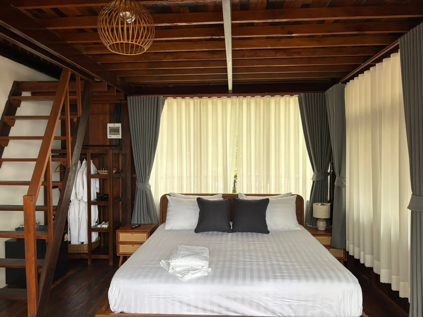 บ้านขนาดใหญ่ 2ชั้นครึ่ง มีชั้นลอยสำหรับพัก1ท่าน บ้านหลังนี้สามารถพักได้สูงสุด5ท่าน มีระเบียงขนาดใหญ่..